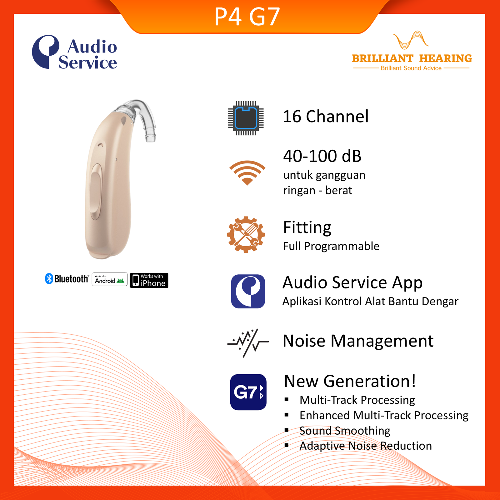 P4 G7 mampu terhubung dengan aplikasi Audio Service, sehingga pengguna dapat mengontrol alat bantu dengar dengan mudah melalui perangkat mereka. P4 G7 telah dilengkapi dengan Bluetooth, sehingga beberapa perangkat Android dan iPhone telah mendukung untuk menerima telepon dan mendengarkan lagu langsung ke alat bantu dengar.